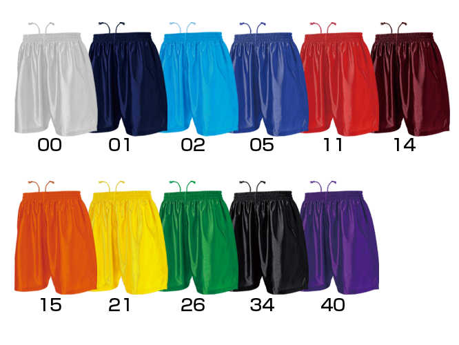 | 備考 | ポリ100%のトリコット、サラサラして光沢感のある素材でカラーもきれいに映えます。 リーズナブルな価格で、練習着やお子様用にぴったり。 速乾性があり、洗い替えもいらないほど。サッカーゲームパンツとして、幅広い分野でプラクティスパンツとして人気の高いアイテムです。 |
