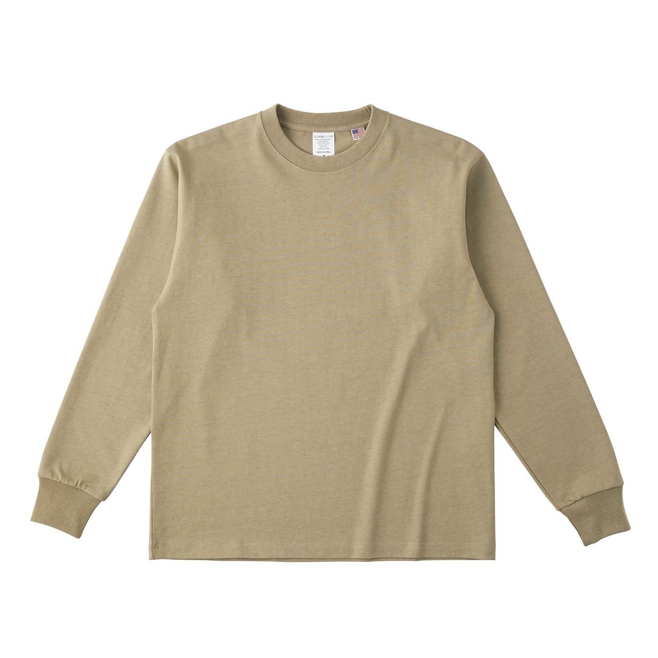 米綿100%のオープンエンド糸を使用した8.1ozロングスリーブTシャツ。