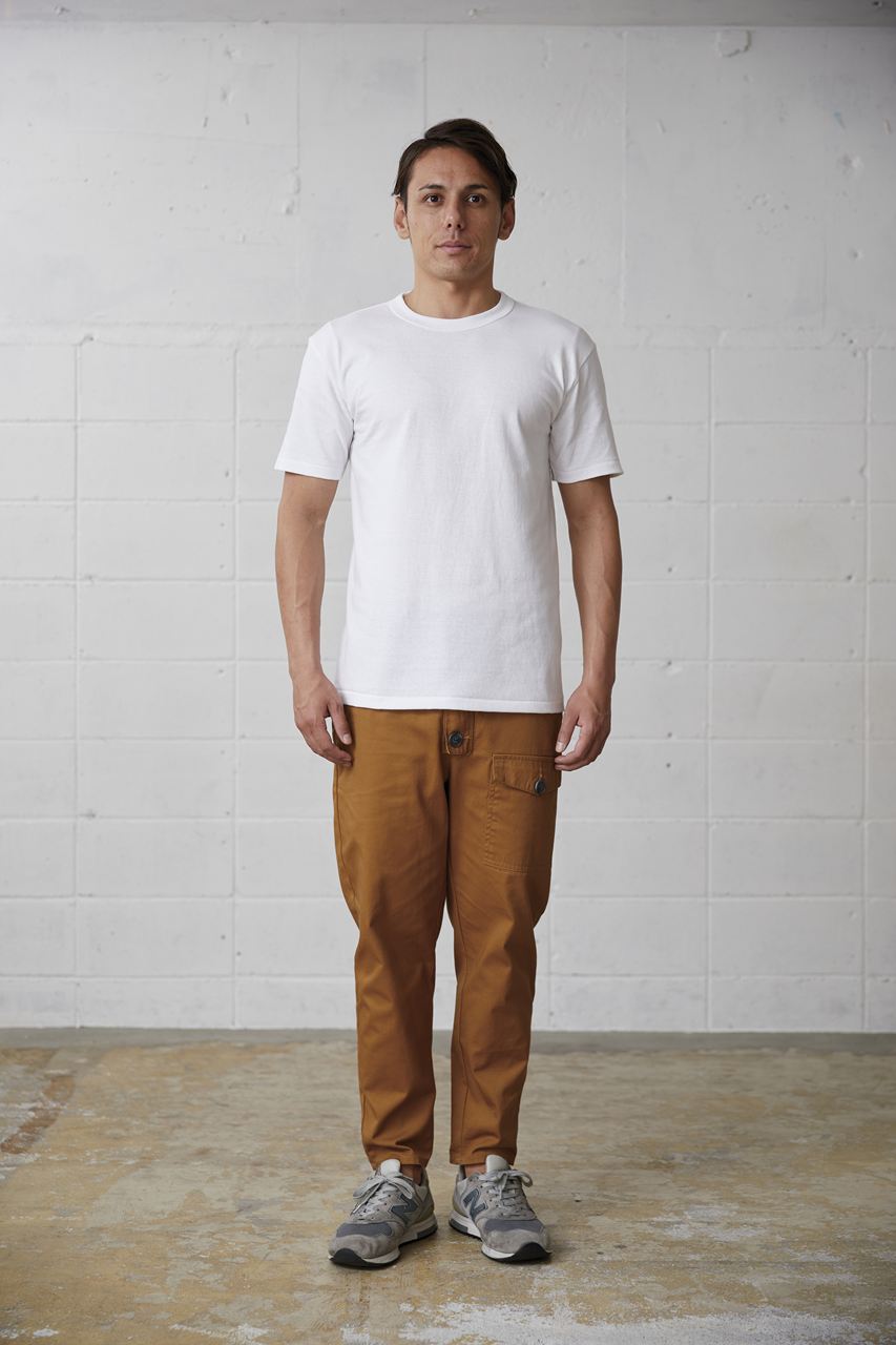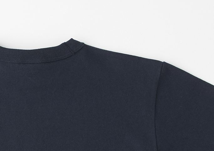 | 備考 | ヴィンテージライクを再現する縫製仕様: バインダーネック結合部分の生地をカットしたまま重ね縫いしています。 二本針バインダー仕様: 太めの襟バインダー幅(約2.5cm) 一本針天地縫い仕様 オープンエンド糸を使用: オープンエンドの糸はふっくらとしており、ボリュームがある一方で、ドライでザックリとした風合いです。 |